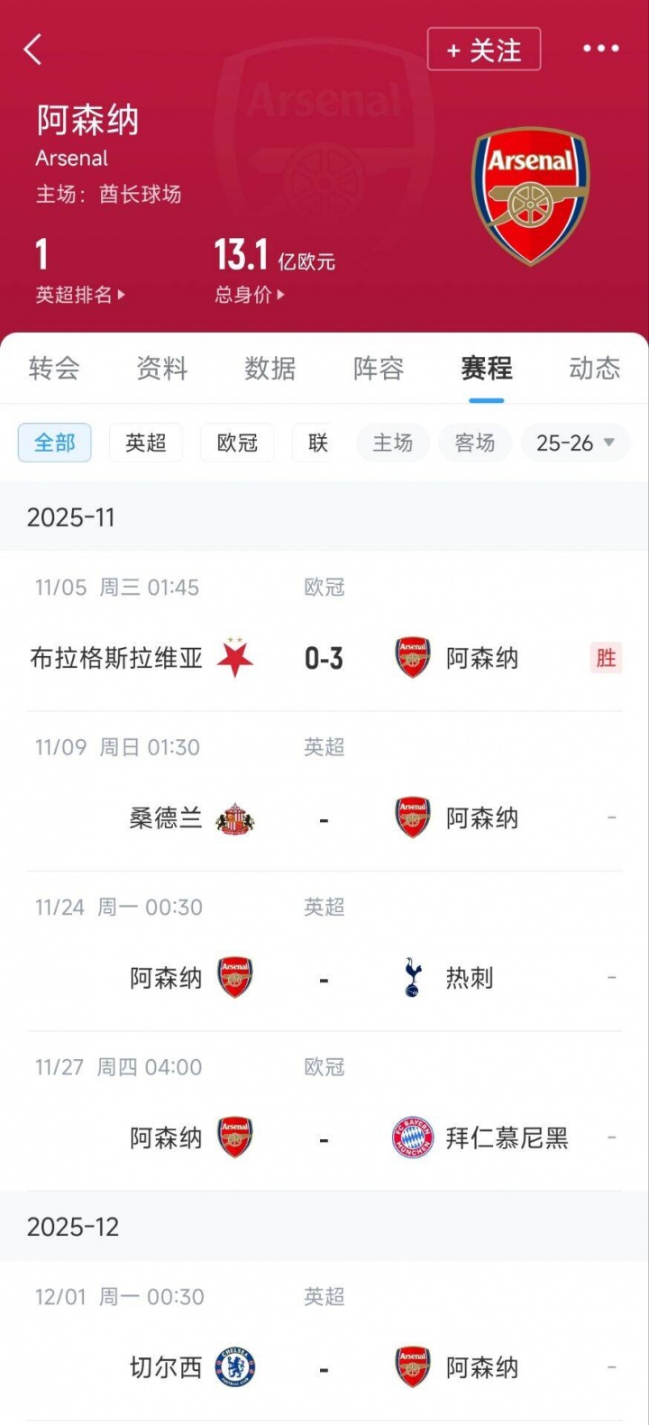 接下来,“魔鬼”阿森纳将面对一段“魔鬼”赛程:英超第4桑德兰,英超第6热刺,英超第7切尔西以及欧冠赛场的“魔鬼”拜仁,德甲霸主开赛至今16连胜。